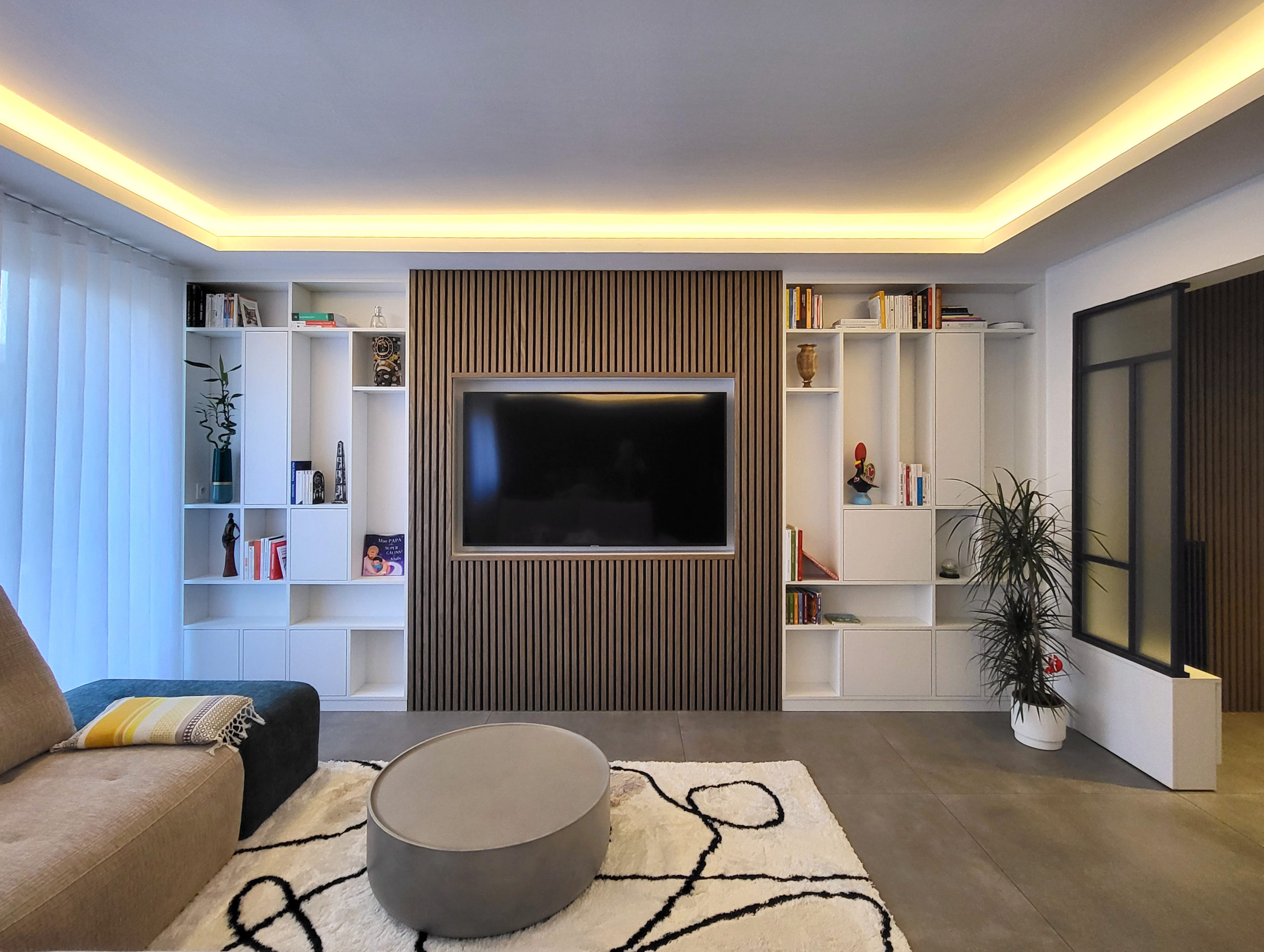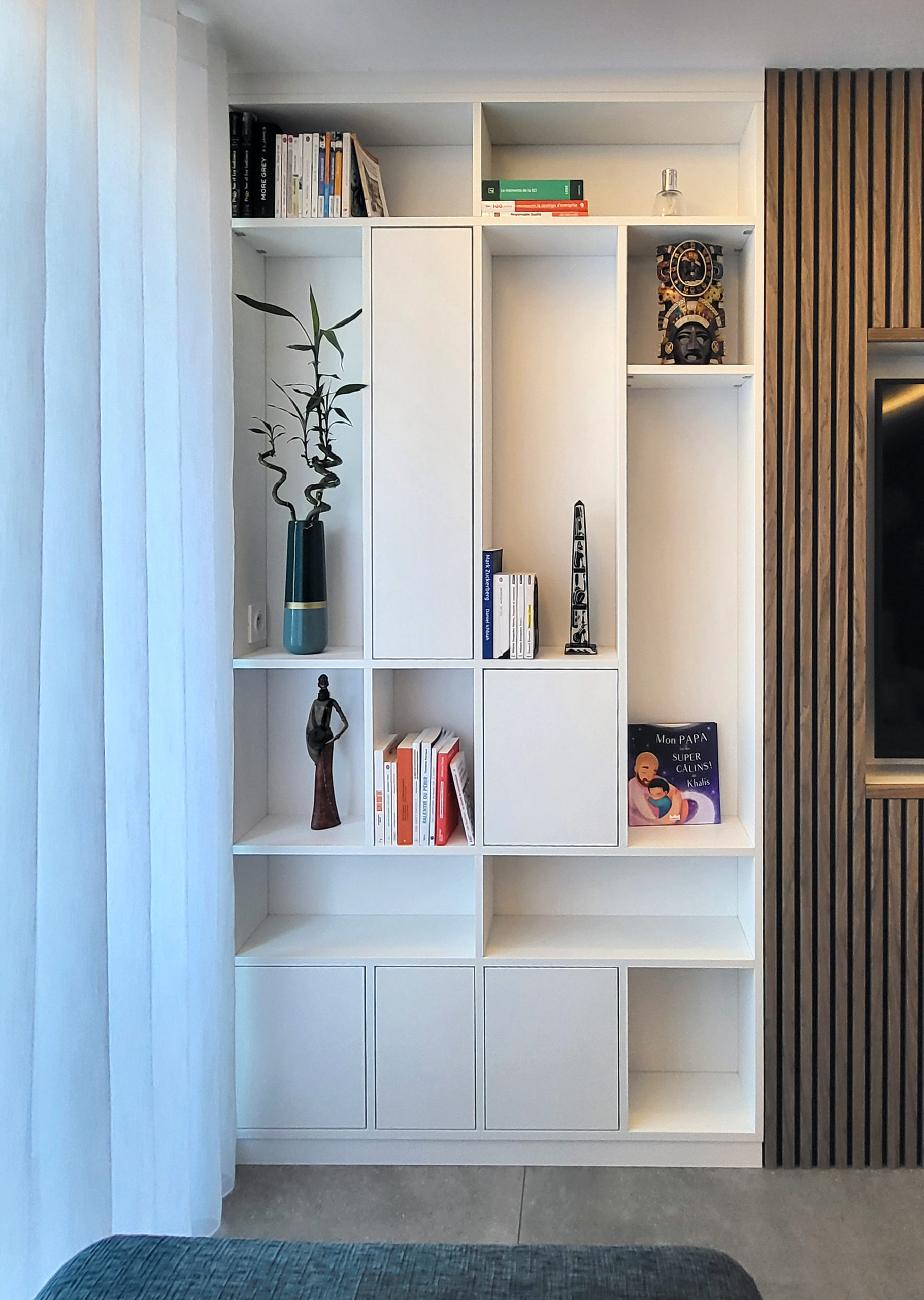 Transformez votre espace avec une bibliothèque sur-mesure qui s’adapte parfaitement à vos besoins ! Que vous souhaitiez une bibliothèque qui habille un mur entier, une séparation de pièce élégante ou un modèle intégrant des rangements astucieux, tout est possible.